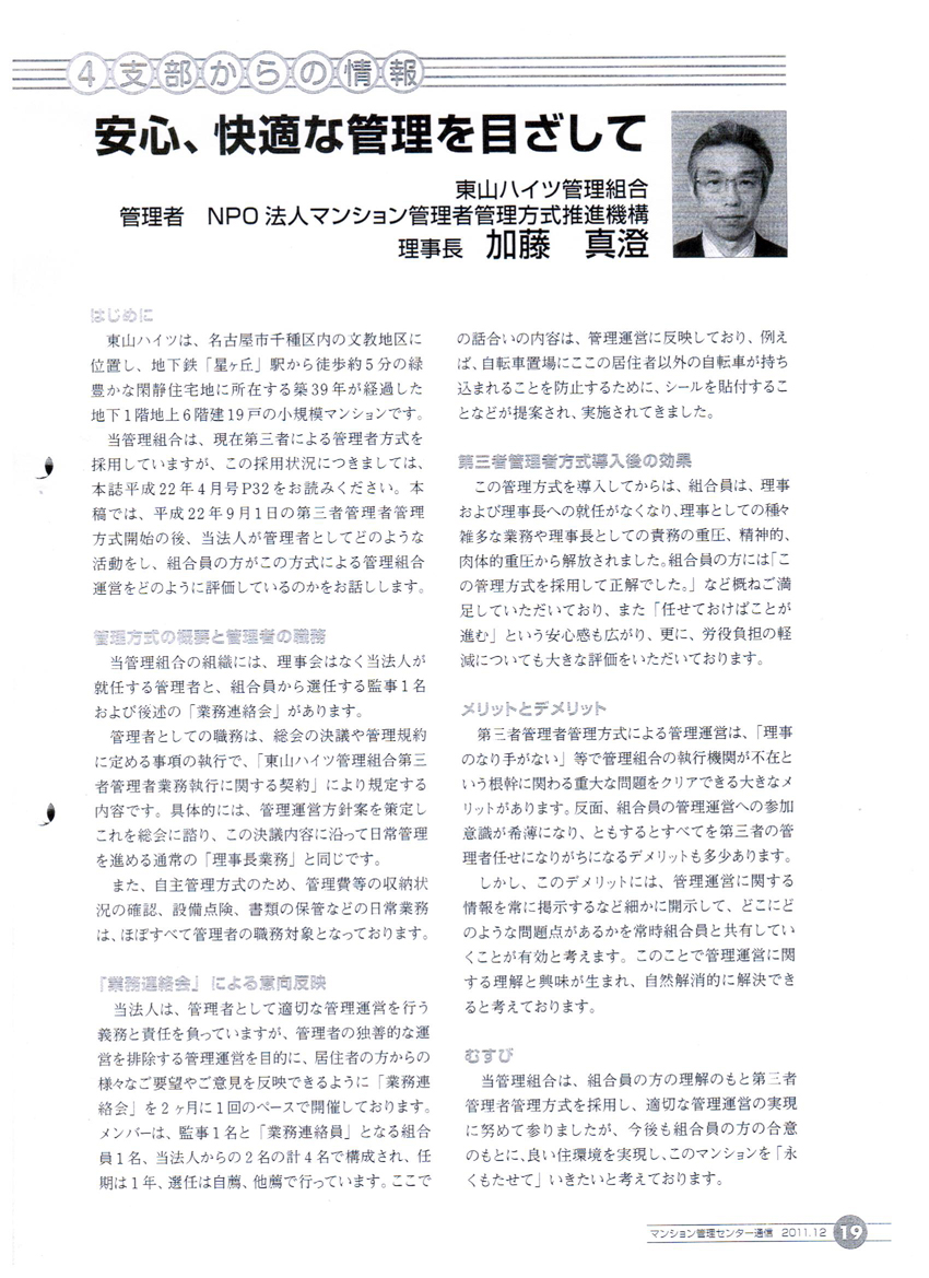 - 第三者管理者方式についての記事を二つ掲載します。