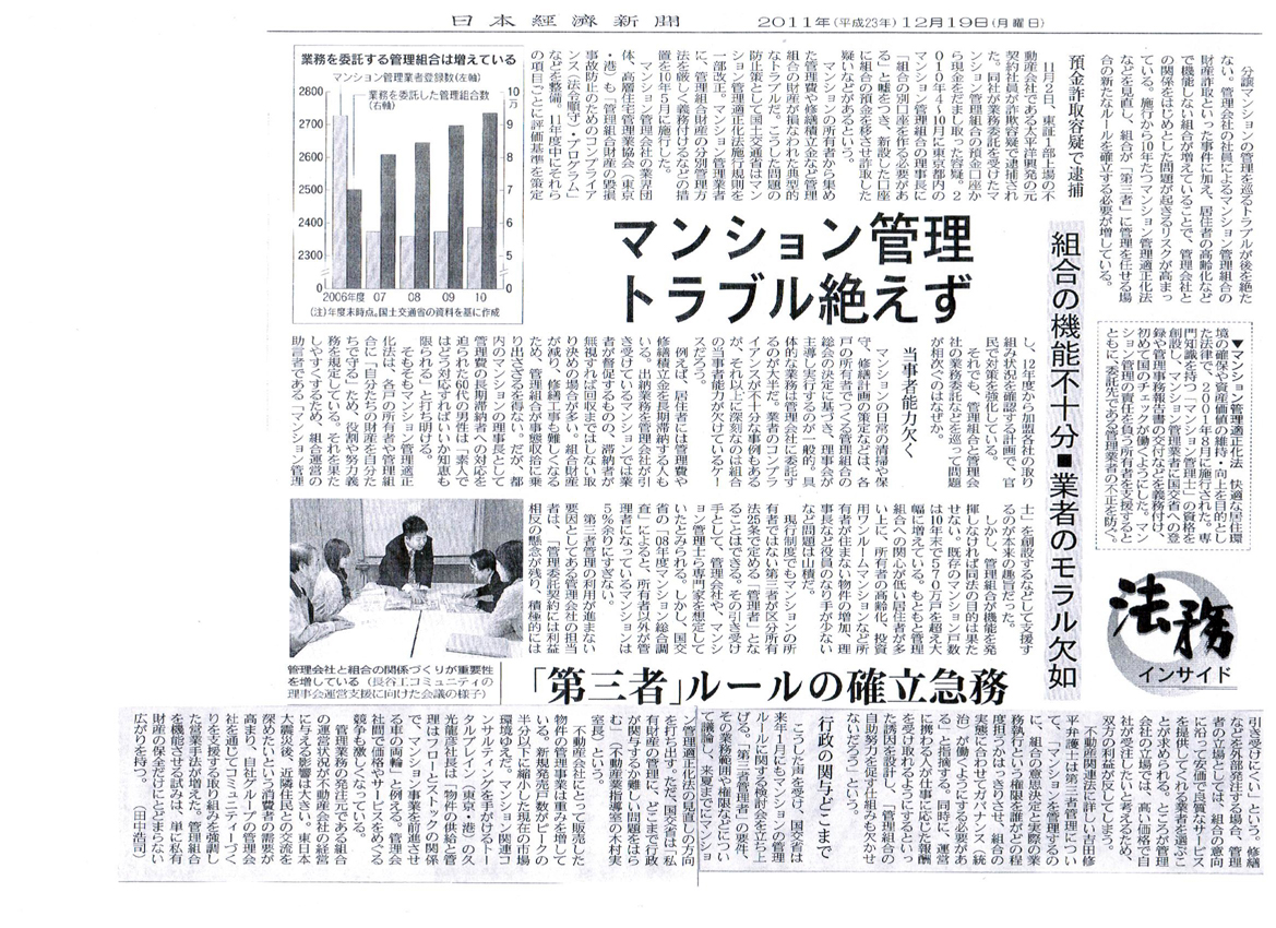 日本経済新聞(2011/12/19)及びマンション管理センター通信12月号からです。